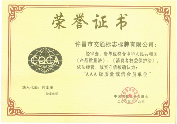 公司AAA級(jí)質(zhì)量誠(chéng)信會(huì)員單位